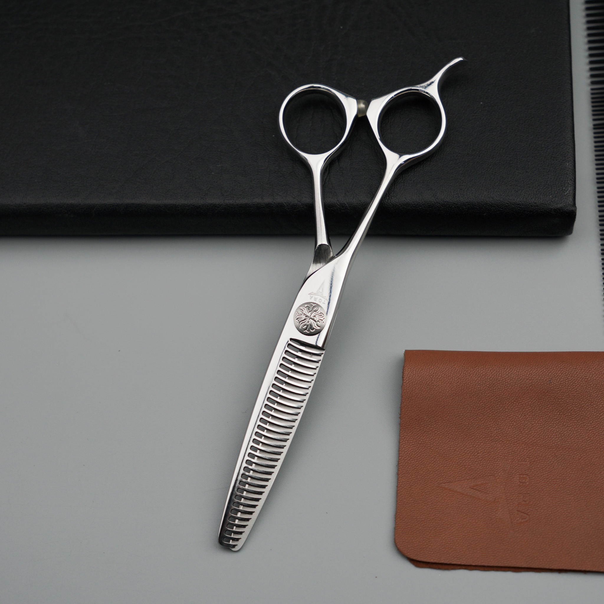 The TORA TM-C23L Thinning Scissors are for left-handed hair stylists , with the ability to apply to thinning, side-trimming, and grooming techniques with a ratio of 20 - 30%, which is an extremely suitable ratio to easily control the amount of hair that needs to be retained or trimmed.
