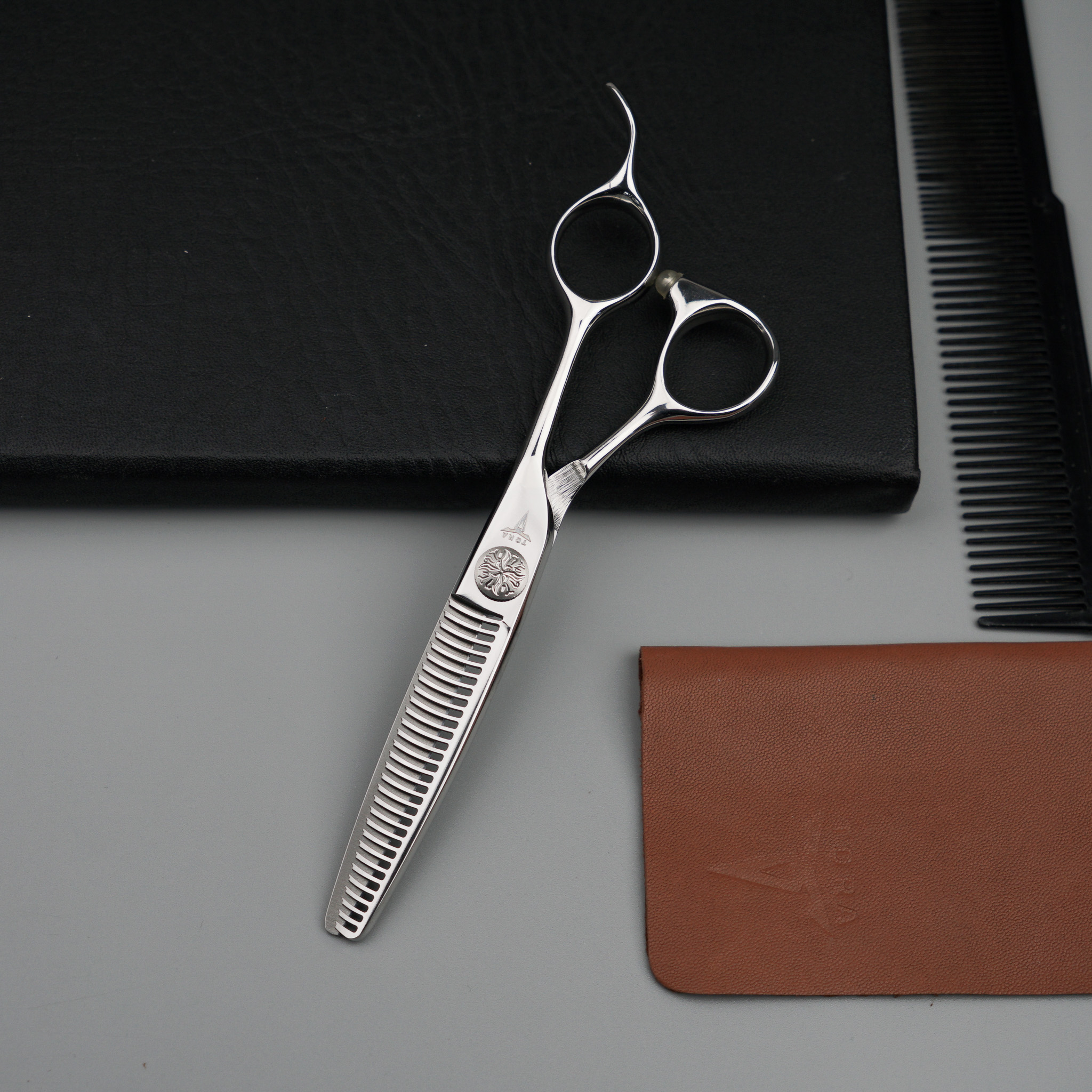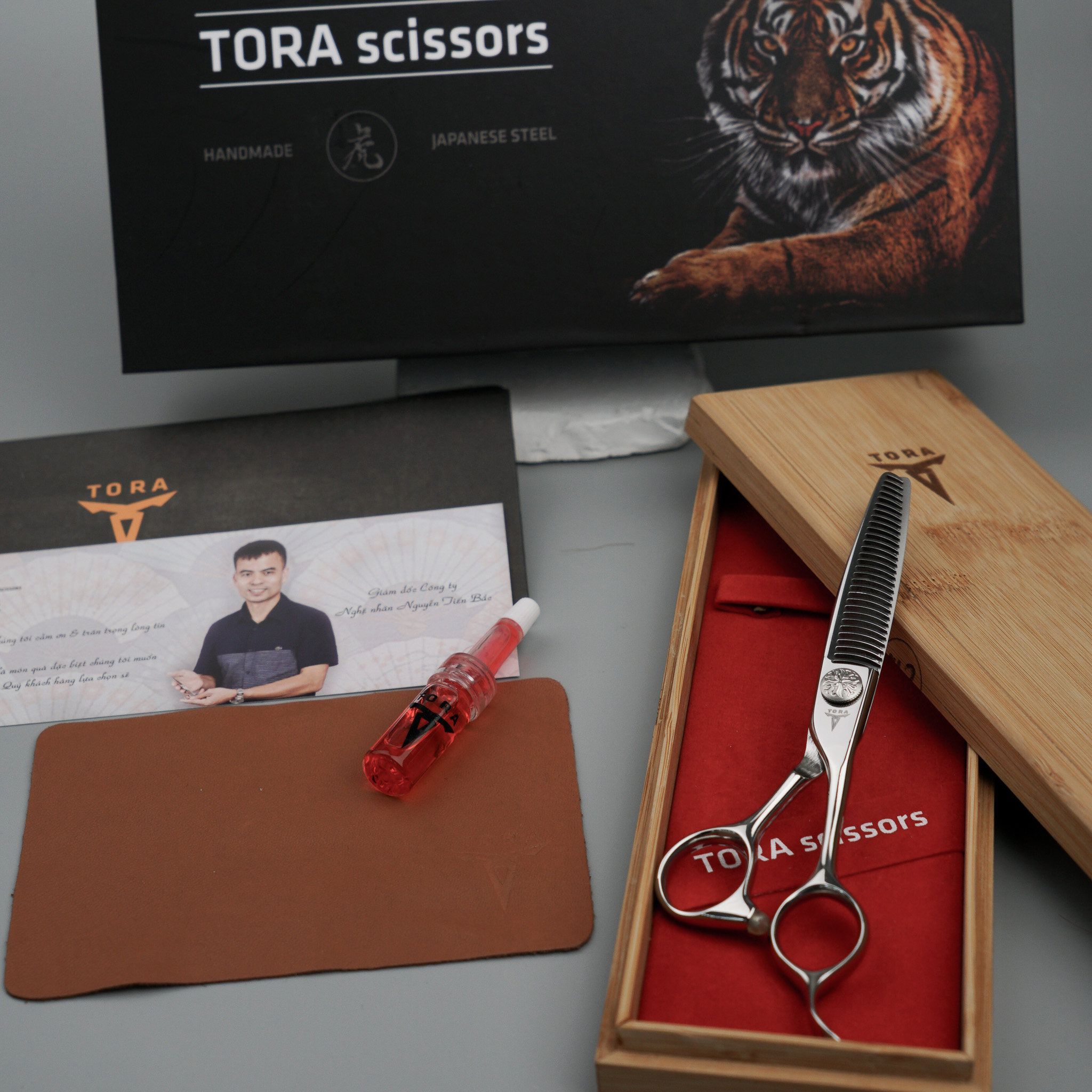 PC-55n nằm trong Bộ sưu tập kéo cắt tóc cao cấp Titan của Tora. PC-55n có độ dài 5.5 inches phù hợp kỹ thuật Point Cut, đi đường Outline, chi tiết và cắt hoàn thiện. Kéo PC-55n được thiết kế nâng cấp cải tiến dựa trên dòng kéo CR-55, là một trong những mẫu kéo bán chạy nhất của Tora. Phần mũi kéo được xử lý chi tiết cho khả năng cắt điểm chuẩn xác tuyệt đối. Lưỡi kéo được mài và đánh bóng bằng tay theo kỹ thuật tiêu chuẩn cho khả năng cắt trơn tru không bết dính.