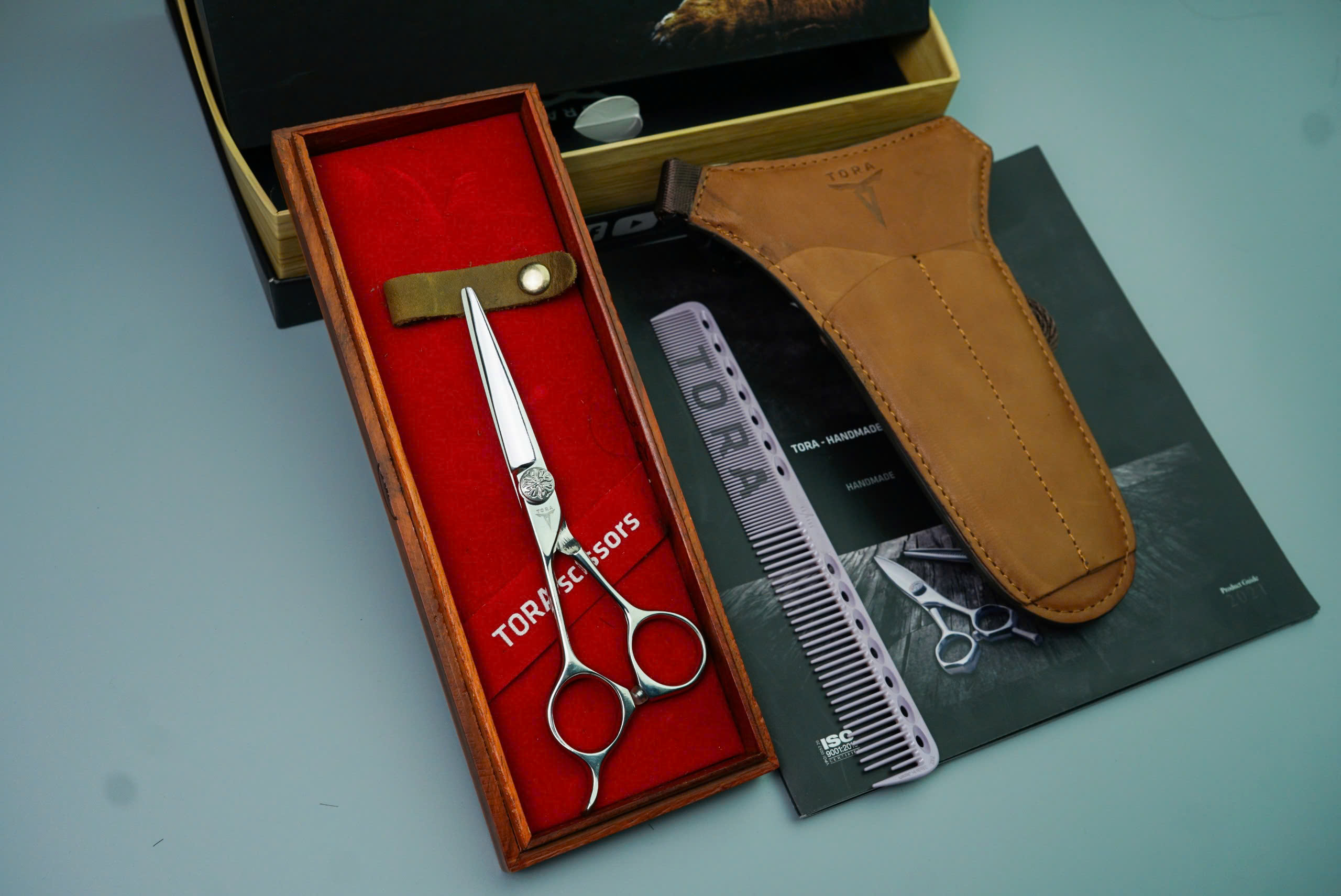 Độ dài: 5.5 inches phù hợp kỹ thuật Point Cut, đi đường Outline, chi tiết và cắt hoàn thiện. Tay cầm thiết kế đặc biệt cho sự điều chỉnh góc độ dễ dàng, ngay cả ở những góc độ nhỏ nhất. Mũi kéo được xử lý chi tiết cho khả năng cắt điểm chuẩn xác tuyệt đối. Lưỡi kéo được mài và đánh bóng bằng tay theo kỹ thuật tiêu chuẩn cho khả năng “cắt trên da” (scissors-over-skin) trơn tru không bết dính.